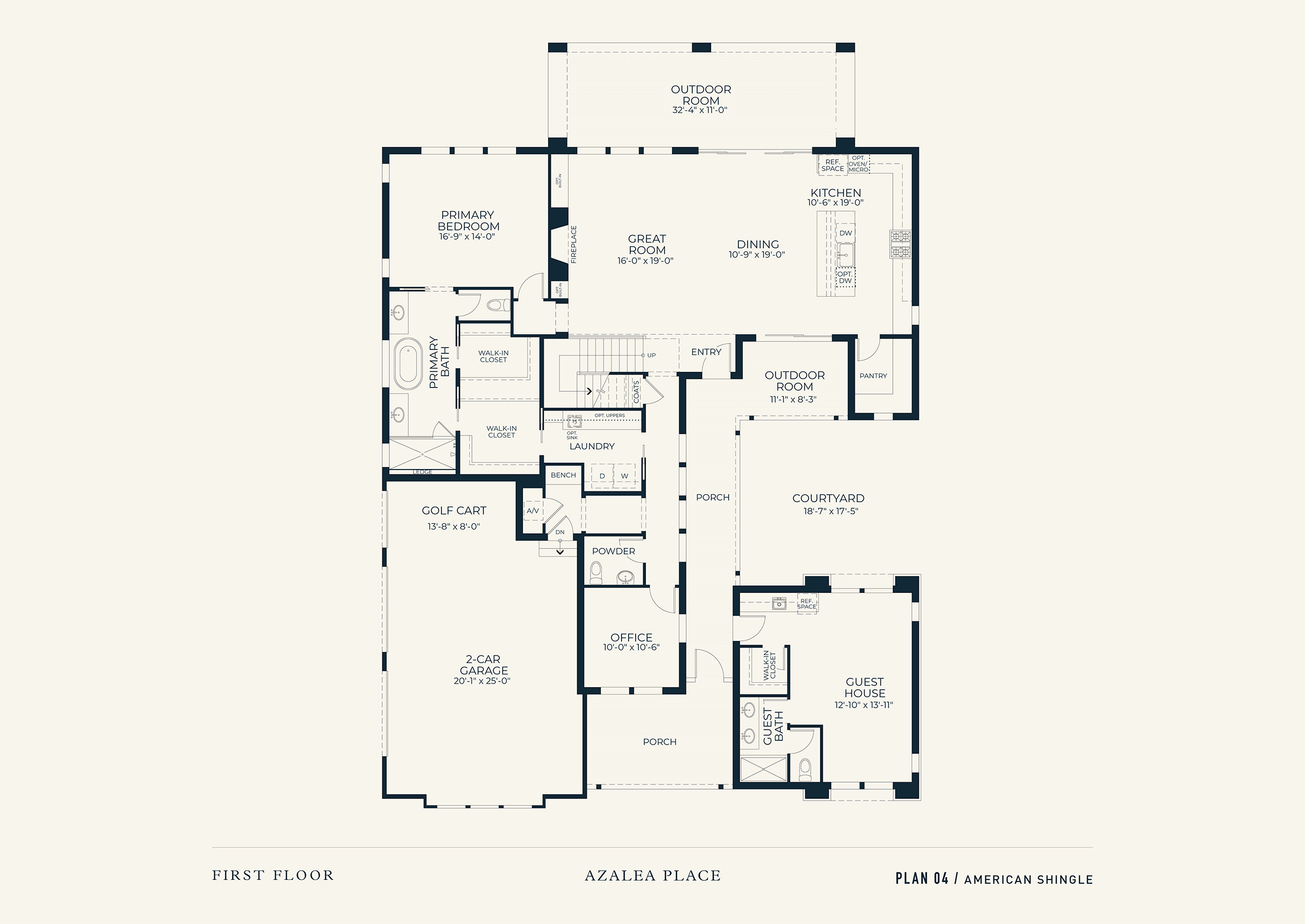 Two generous outdoor living areas, including a covered porch with a 42” gas fireplace, provide the perfect setting for Pinehurst’s year-round evenings. Inside, the home is finished with upgraded tile and countertops throughout. The courtyard also includes an exterior gas line, making it easy to add a fire pit or additional outdoor feature.